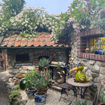 Eine Philosophenbank und ein großer gemauerter Grillkamin, sowie ein Holzbackofen aus Stein und Schamott sorgen für schöne Genussstunden.